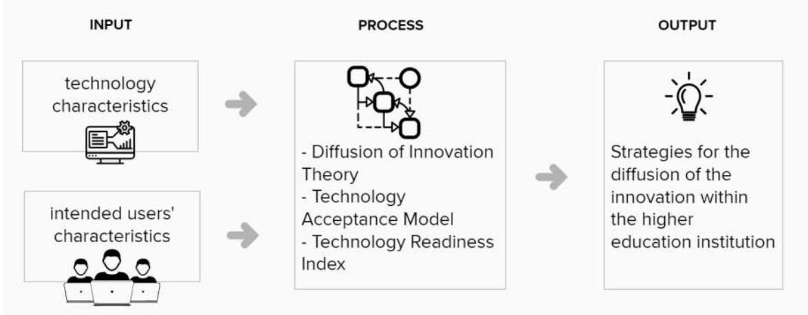 In the context of the generalizability concept of theories, the Technology Acceptance Model (TAM), Technology Readiness Index (TRI), and Diffusion of Innovation (DOI) are utilized to characterize the intended users of the technology in a higher education institution and generate recommendations on how to best approach the intended users and popularize the information technology (IT).