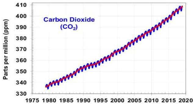 In 2020, the United Nations World Meteorological Organization (WMO) states in a report that despite global lockdowns and declining industrial activity, transport and expected $\mathrm{CO}_{2}$ emissions, its level of September 2019, which was $408.6~\mathrm{ppm}$, increased in September 2020 to $411.5~\mathrm{ppm}$, indicating that the change in this gas content is clearly not commensurate with actions to reduce the effects of climate change [10]. It seems that reducing $\mathrm{CO}_{2}$ emissions from industry and transport, which is only 7.8 units [4], does not mean that its appeal to the atmosphere will stop because: