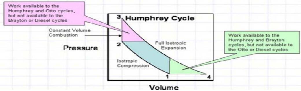 Figure 7: Comparison thermodynamic cycles Otto, Brayton, Diesel and Atkinson-Humphrey [4]