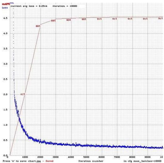 Fig. 3(a): mAP As shown in Fig. 3(b) the model struggled initially with the mean average precision (mAP) of $41.03\%$ for the first 1000. However, over the next 1000 iterations, the performance rose to a significant $86.43\%$.