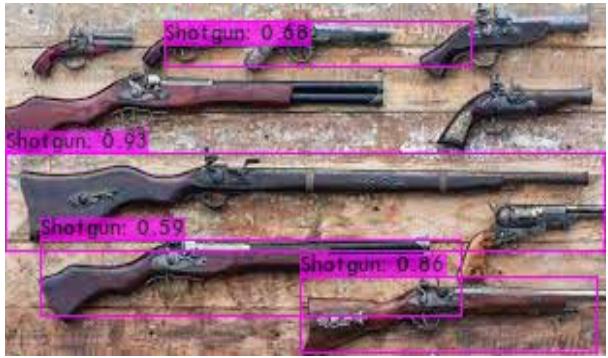 Fig. 6(b): Model Detection Result for Shotgun For YOLOv4, Table 1 shows the average precision for each of the classes.