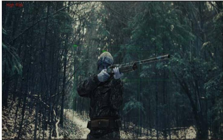 Moreover, the model demonstrated the highest accuracy in recognizing "Knife" instances (class_id = 3), achieving an AP of $96.11\%$. With only 2 false positives, the model's 80 true positives underscore its robustness in identifying potential threats posed by knives, significantly contributing to anomaly detection systems. The "Rifle" class (class_id = 4) yielded an AP of $95.98\%$, underscoring the model's exceptional ability to detect rifles. With 128 true positives and 13 false positives, the model demonstrated a remarkable capability to discern criminal scenes associated with rifles, making it an asset in threat detection scenarios. Figures 5a, 6a, and 7a show the input images to our model, while Figures 5b, 6b, and 7b respectively show the results of our model.