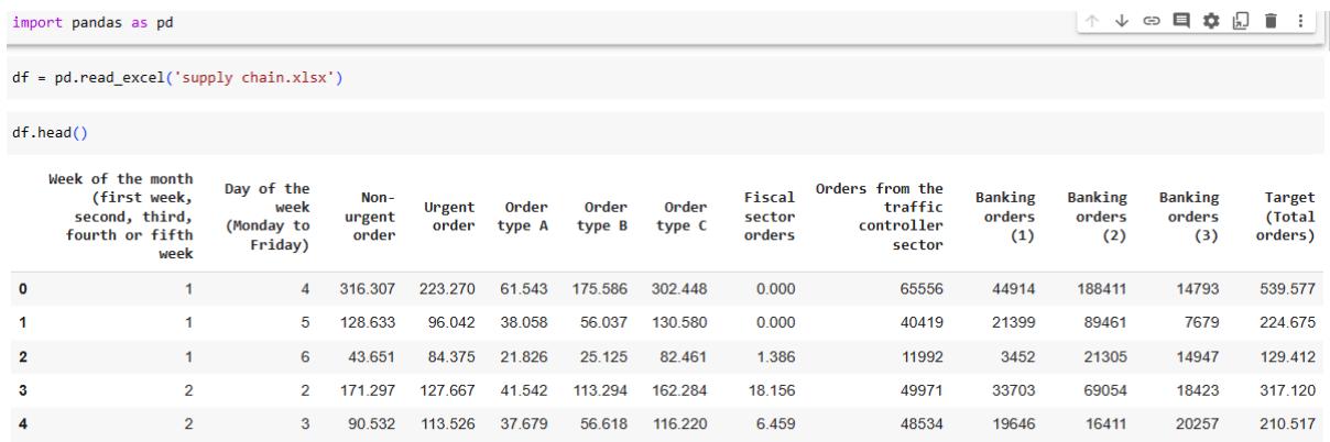 The dataset utilized for this investigation is from UCI repository Daily Demand Forecasting Orders - UCI Machine Learning Repository. It was acquired on the field by a Brazilian Logistic company for a period of sixty days. The attribute of the dataset was shown using Pandas library at pre-processing stage.