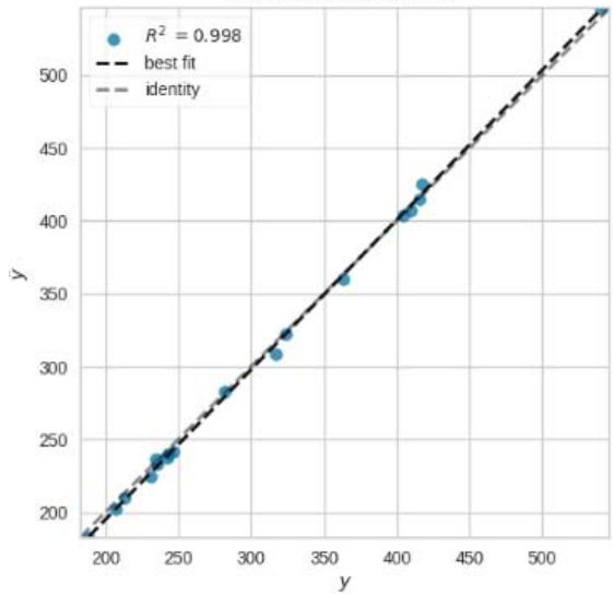 <table><tr><td>Model Performance Parameters</td><td>Value</td></tr><tr><td>MAE</td><td>0.2196</td></tr><tr><td>MSE</td><td>0.2108</td></tr><tr><td>RMSE</td><td>0.3036</td></tr><tr><td>R2</td><td>0.9998</td></tr><tr><td>RMSLE</td><td>0.0009</td></tr><tr><td>MAPE</td><td>0.0007</td></tr><tr><td>TT (Training Time)</td><td>0.0880 seconds</td></tr></table>