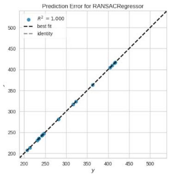 <table><tr><td>Model Performance Parameters</td><td>Value</td></tr><tr><td>MAE</td><td>0.1612</td></tr><tr><td>MSE</td><td>0.0599</td></tr><tr><td>RMSE</td><td>0.2003</td></tr><tr><td>R2</td><td>1.0000</td></tr><tr><td>RMSLE</td><td>0.0006</td></tr><tr><td>MAPE</td><td>0.0005</td></tr><tr><td>TT (Training Time)</td><td>0.0890 seconds</td></tr></table>