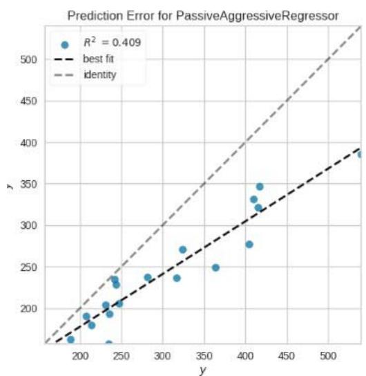 From figure 10, we picked the first six models with smaller MAE and better predictions for discussion. The rest of the models from Huber Regressor to Passive Aggressive Regressor have high value of MAE and their predictions are less accurate.
