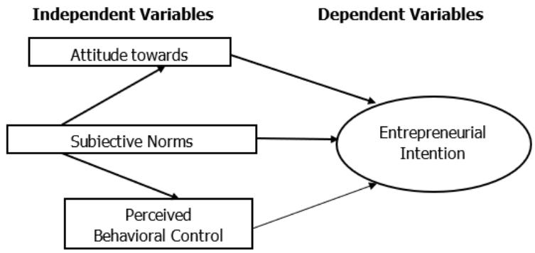 The main finding is that attitudes have the strongest and positive effect on entrepreneurial intentions. This research contributes to the study of entrepreneurship as it uses the theory of planned behavior in the context of the UAE amongst active entrepreneurs. Implications for theory and practice are discussed (Fenech, R., et al. 2019). Examined how subjective norms, attitudes and entrepreneurship self-efficacy influence the entrepreneurial intentions in the Mexican population. They found support for their hypothesis stating that subjective norms, attitudes and entrepreneurial self-efficacy have a positive effect on social entrepreneurial intention (Cavazos-Arroyo et al. 2017). Similarly, within the Indonesian contest found that attitudes, subjective norms and self-efficacy have a positive and significant influence on the intention of entrepreneurship (Utami, 2017).