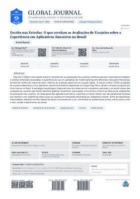 Roberto Mauro de Oliveira Barbosa, Philipp Ehrl, Marcela Barbosa da Silva. 2026. \u201cEscrito nas estrelas: O que revelam as avaliações de usuários sobre a experiência em aplicativos bancários no Brasil\u201d. Global Journal of Management and Business Research - C: Finance GJHSS-C Volume 26 (GJHSS Volume 26 Issue C1).