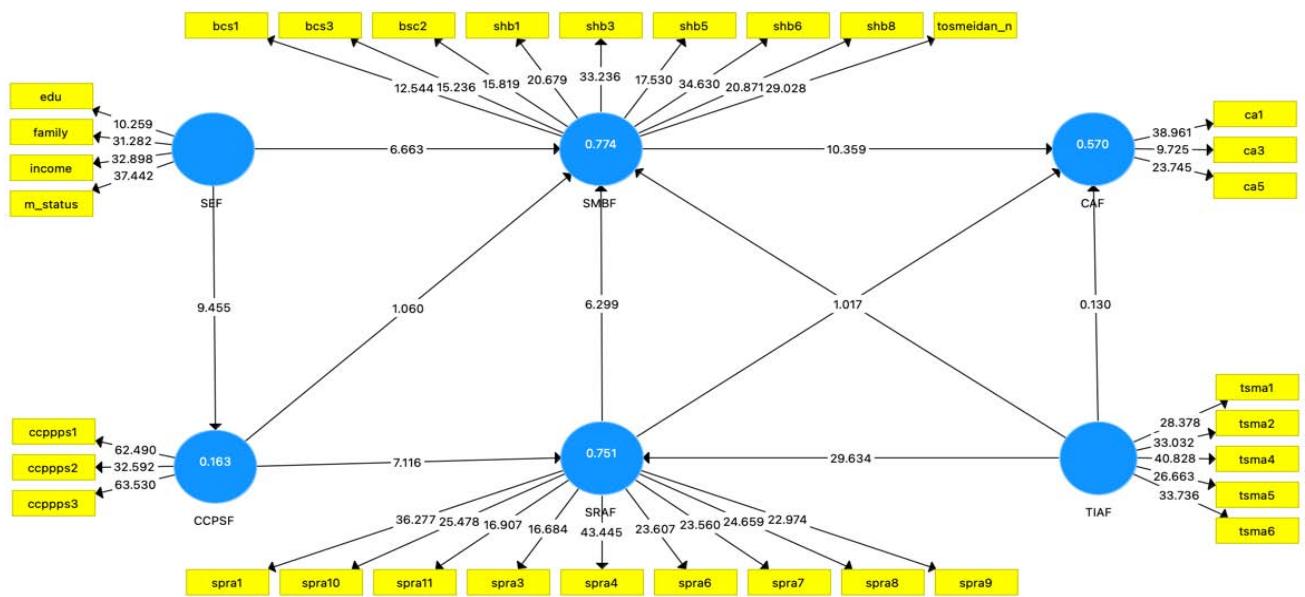 Figure 8: Model Bootstrapping with Path Coefficient and t value