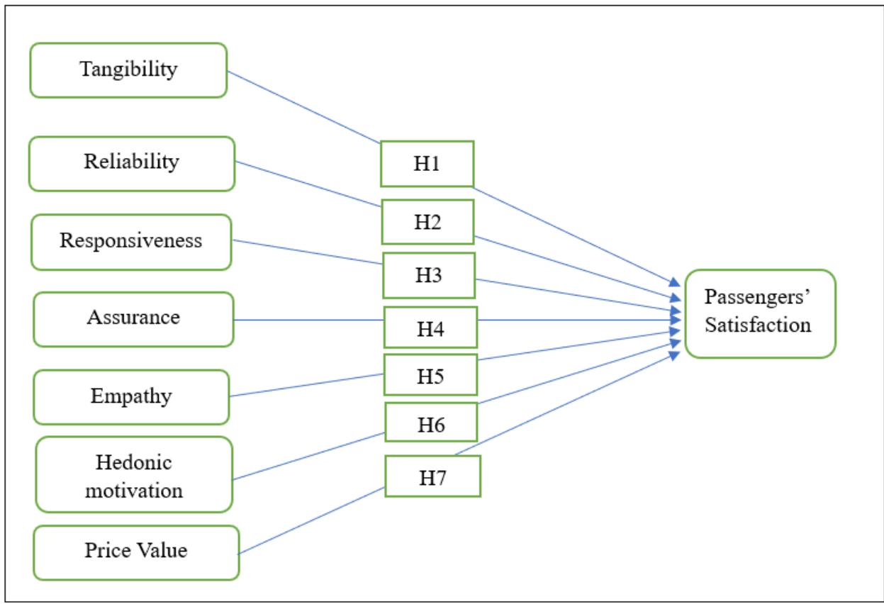 Following this Introduction, the rest of the parts of this research outline are as follows: the second section presents the pertinent literature, conceptual framework, and hypotheses development. Next, the study details the methodology. Subsequently, the fourth section depicts the findings and discussion on service quality dimensions and passenger satisfaction. Finally, the fifth section highlights the theoretical and practical implications, noting some limitations and signifying actions for imminent research.