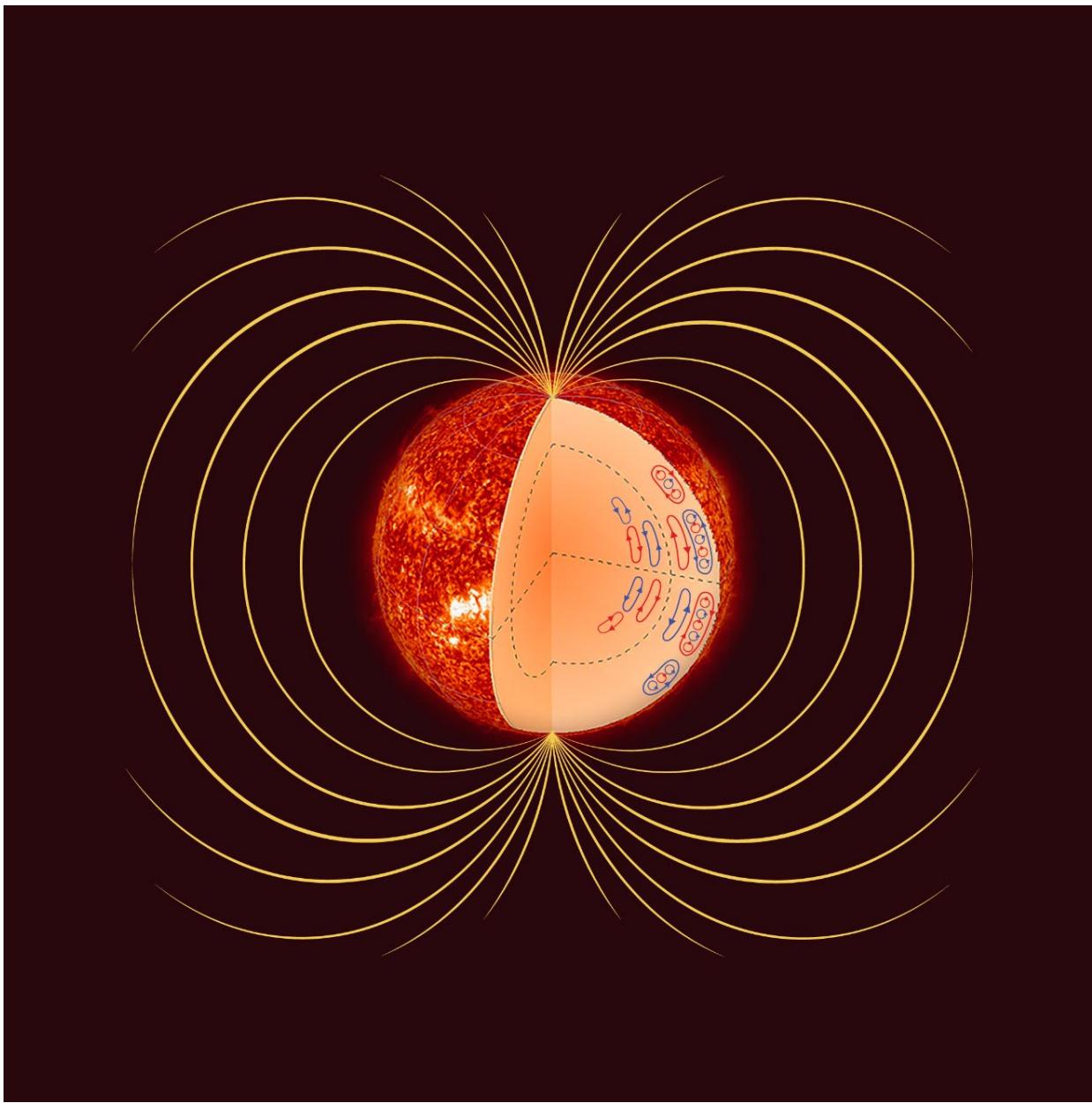 The Sun has two chains of alternating vortices and anti-vortices running parallel to the equator and the quantum energy levels of the Sun's NEMF.