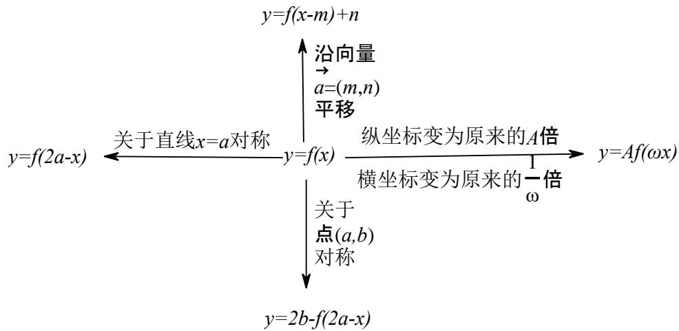 7) $y = \sin x$ 、 $y = \cos x$ 、 $y = \tan x$ 的对称中心分别为 $(k\pi, 0)$ 、 $(\frac{\pi}{2} + k\pi, 0)$ 、 $(\frac{k}{2}\pi, 0)$ ,其中 $k \in \mathbb{Z}$ 正弦、余弦的对称中心也是其相应的零点,正余弦函数在对称轴处函数值取最值。