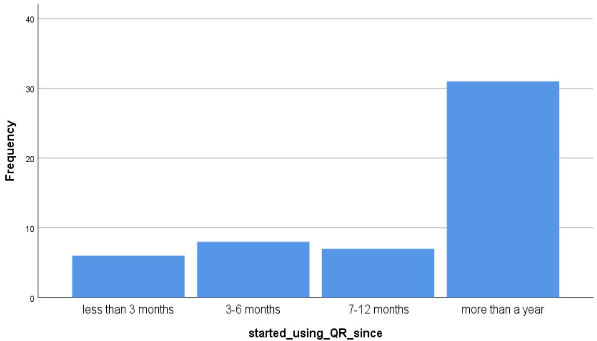 5. 31 out of 52 respondents had started using QR codes more than a year ago. It means the majority of the respondents were exposed to QR codes after the pandemic.