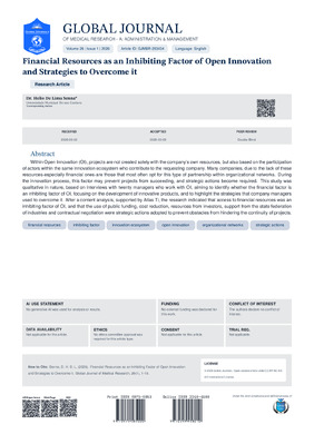 Dr. Helio De Lima Senna. 2026. \u201cFinancial Resources as an Inhibiting Factor of Open Innovation and Strategies to Overcome it\u201d. Global Journal of Management and Business Research, Global Journal of Management and Business Research - A: Administration & Management GJMBR-A Volume 26 (GJMBR Volume 26 Issue A1).