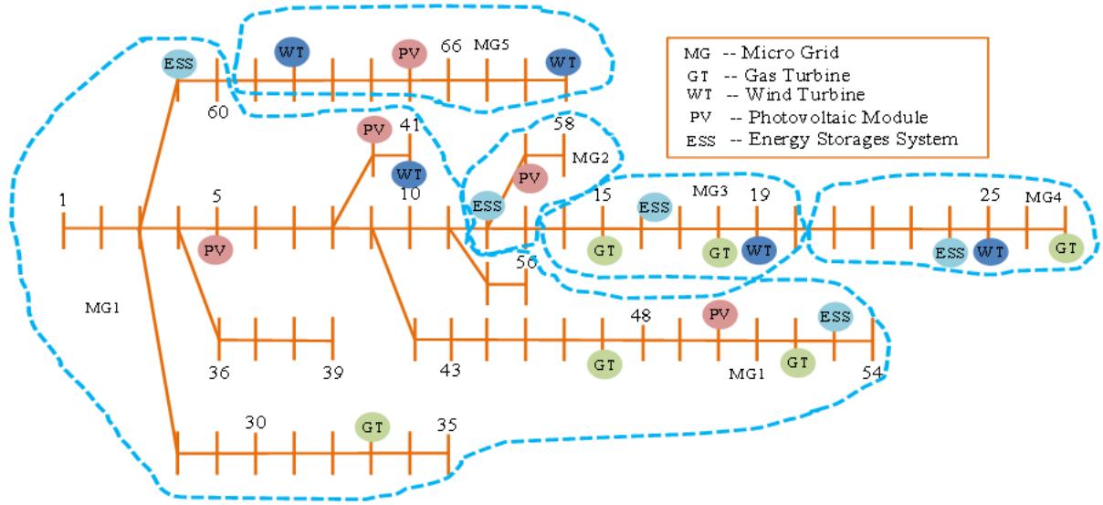 ## VI. MULTI-MG POWER DISTRIBUTION SYSTEM UNDER STUDY