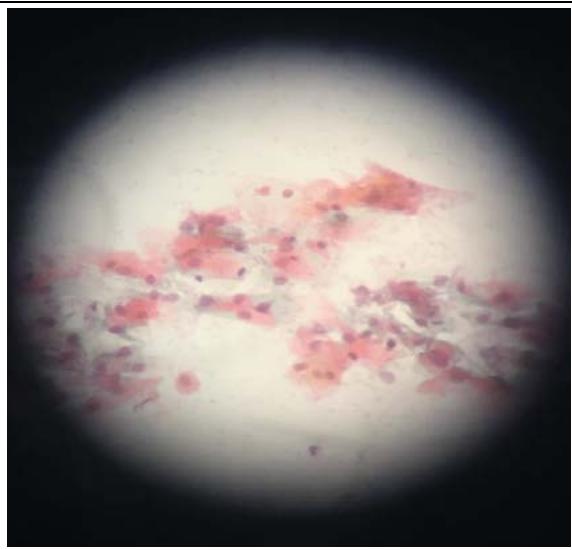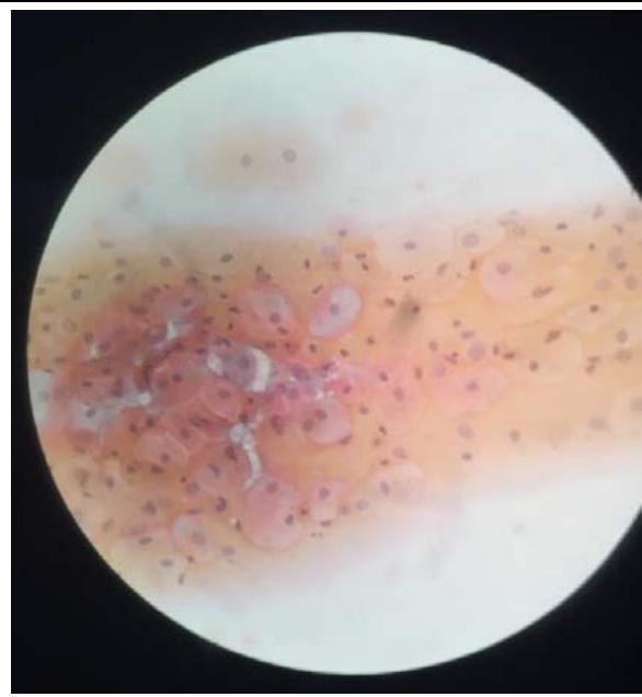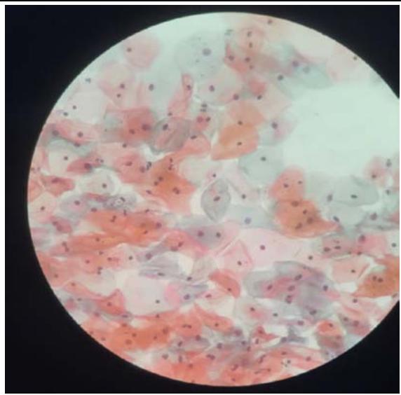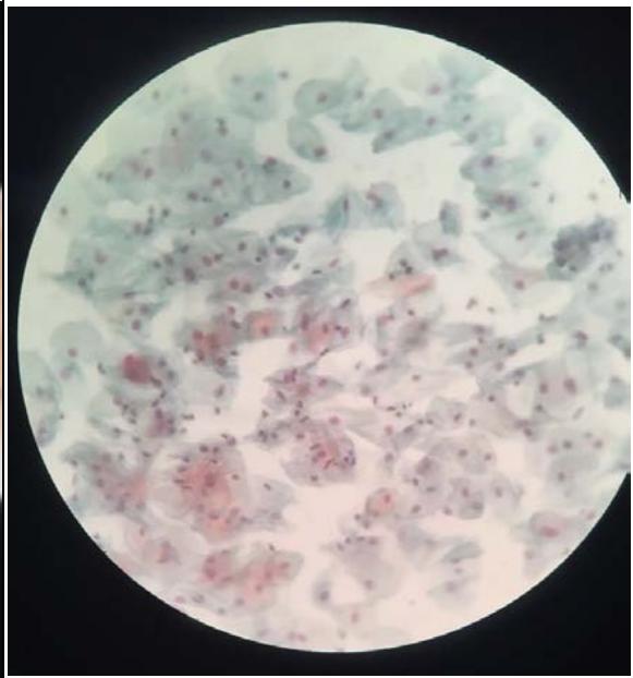 Figure 4: Normal smear - Patient B (post-procedure). Figures 1 and 3 show pre-procedure images of vaginal epithelial cells with severe atrophy and low cellularity. Figures 2 and 4 show smears demonstrating post-procedure recovery of vaginal cellularity and normal epithelium.