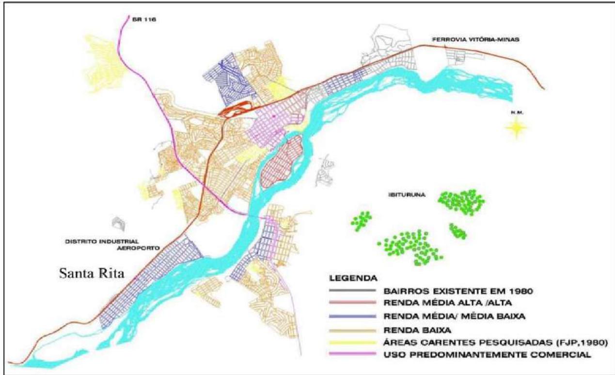 Figura 2: Bairro de Santa Rita, em Governador Valadares, 1980 FonMaistribuiçãoadistr-sovrdor Vladar aoado comsinóst realizado pelo Fundação João Pinheiro, 180 (GUIMARÃE, 0, p.81.