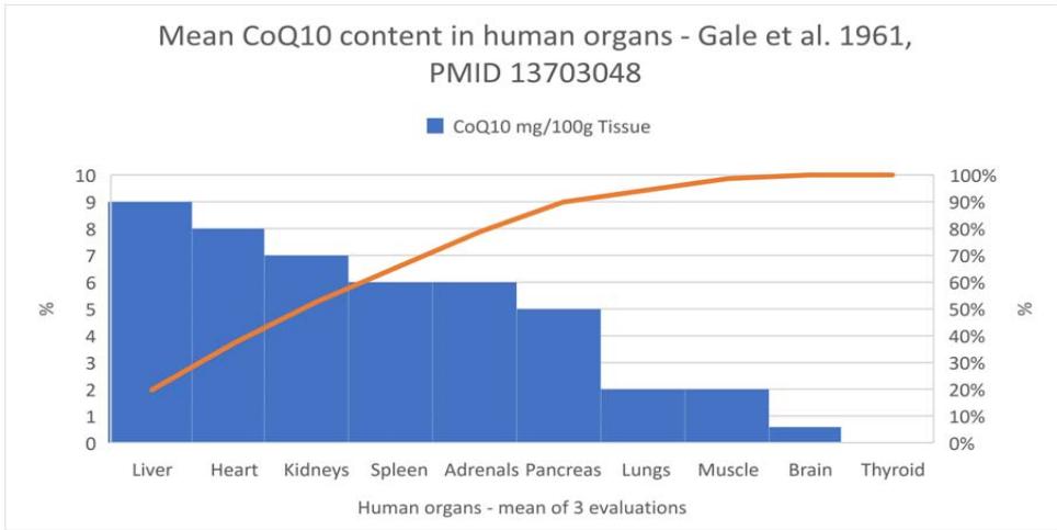 $\mathrm{CoQ}_{10}$ tissue levels in selected organs. Adapted from Gale et al. (41)