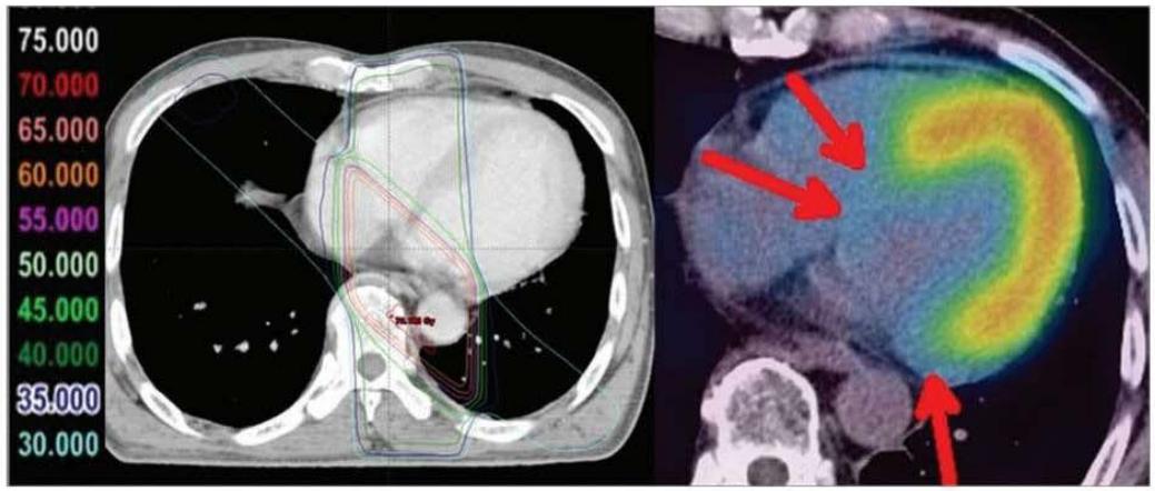 Figure 4: Taken from Umezawa (143). The Figure is used on the basis of Creative Common CC-BY-NC. Umezawa R, Takase K, Jingu K, Takanami K, Ota H, Kaneta T, et al. Evaluation of Radiation-Induced Myocardial Damage Using Iodine-123 B-Methyl-Iodophenyl Pentadecanoic Acid Scintigraphy. J Radiat Res (2013) 54(5): 880-9. Epub 2013/02/16. doi: https://doi.org/10.1093/jrr/rrt011