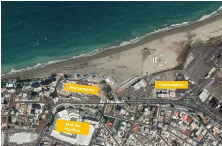 Fuente: Imagen cortesía de Google Earth 2020. Figura 3: Panorámica de la playa Murciélago y sus alrededores.