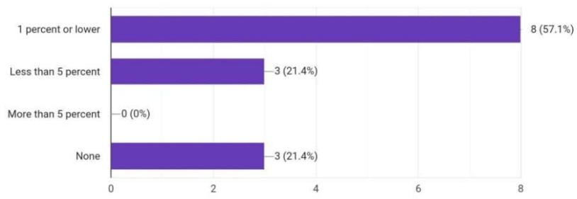 Fig. 10: Next Question, Related to the Previous One Questions the Respondents that "Do you Feel these Business Social Contributions are Armed at Eventual Benefits to Business, or, Cause Marketing is A "Win-Win" Situation for Corporate, Customers & Society?" The Results Show that 66.7 Percent of the Respondents Support the Idea Proposed by this Research Paper, which is that CSR Creates a Golden Win-Win Situation for All Three Parties Involved. (14) How much percentage of your revenue do you spend on cause marketing (CSR)?