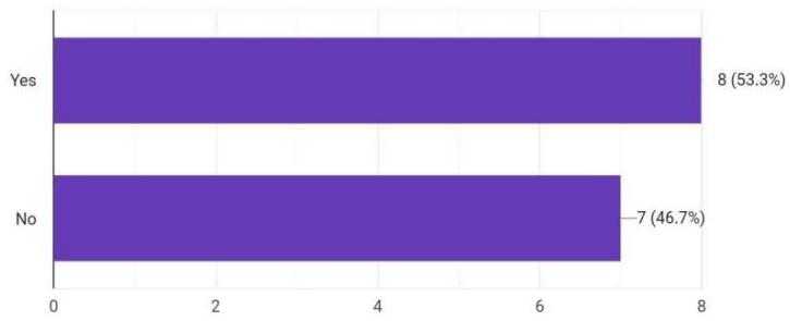 15 responses Fig. 8: The Following Graph Shows the Results of the Question, Which is "Do You Believe by Choosing you, your Customers feel More Satisfied Morally and you Attain More Customer Retention", The Results Show that 53.3 Percent Believe So, and Strengthens the Point of Kayla And Paul on Customer Retention and How CSR Increases It.