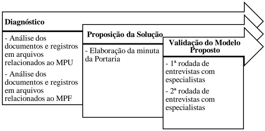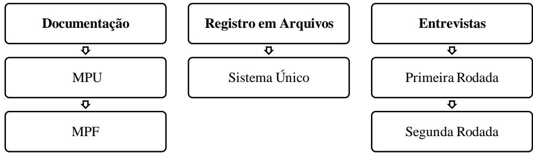 Seguindo os passos recomendados por Yin (2015) para assegurar a confiabilidade do estudo, a coleta de dados foi processada por meio do uso de múltiplas fontes de evidências, iniciada com o levantamento e análise dos instrumentos normativos vigentes no MPU e no MPF relacionados à governança. Em seguida, realizou-se um levantamento de evidências na base de dados do Sistema Único, utilizado para a tramitação de documentos e processos administrativos na instituição, que forneceu as condições necessárias para a elaboração do modelo inicial do normativo.