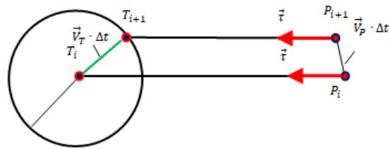 \left(\vec{T}_{i + 1} - \vec{T}_{i}\right)^{2} = \left(\left|\vec{V}_{T}\right| \cdot \Delta t\right)^{2} \\