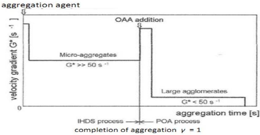 Understanding the significance of the intensity of agitation on the course of the formation of aggregates and their properties led to the development of the Inline High Density Suspension (IHDS) formation process. The formation of aggregates under the IHDS process produces micro-aggregates fairly uniform in size and density. These micro-aggregates can be enlarged to a lower size macro-aggregates using subsequent low agitation intensity (Figure 2).