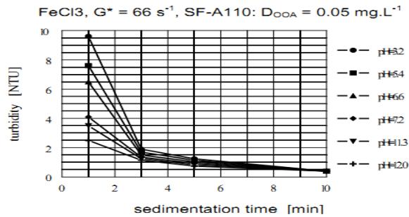 Since the character of the results concerning formation of micro-aggregates, obtained with aggregation agents of both types is very similar, only the results obtained with ferric chloride and Floccotan are presented.
