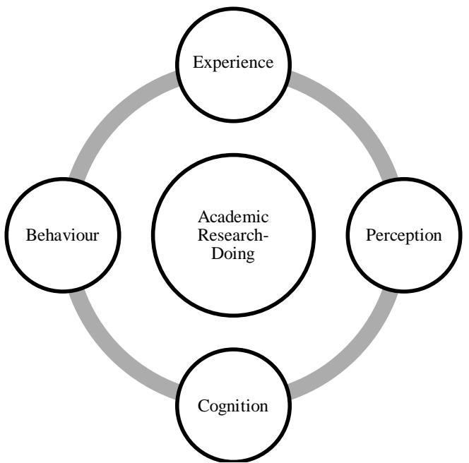 By nature, academic research-doing involves the four-stage cycle of experience, perception, cognition and behaviour. As shown in Figure 1 and respective disclose: