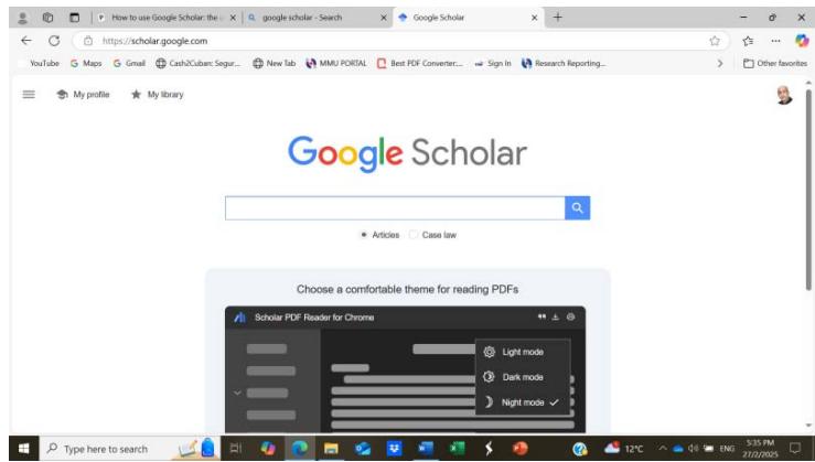 Methodologically speaking, Google Search engines provide the most amplified research-gatedatabase worldwide, which At the Finger Click anyone can access it. (ScholarsEdge Web, 2024) quoted that, in the contemporary landscape of digital research, effective search engines play a crucial role as indispensable tools for scholars seeking access to a wide array of scholarly materials at no cost. Leading the cohort of research paper search engines is Google Scholar, a platform that stands out for its unrestricted access, democratizing the availability of academic information. This guide prioritizes free search engines tailored for research papers, with the objective to optimize the efficiency of scholarly investigations. As such, Google Scholar stands out as one of the best websites for research papers, utilizing Google's robust search capabilities tailored to academic literature. It provides complimentary access to a diverse array of scholarly subjects. It frequently includes full-text PDFs, making it a comprehensive resource for articles from academic journals, conference proceedings, theses, and dissertations.