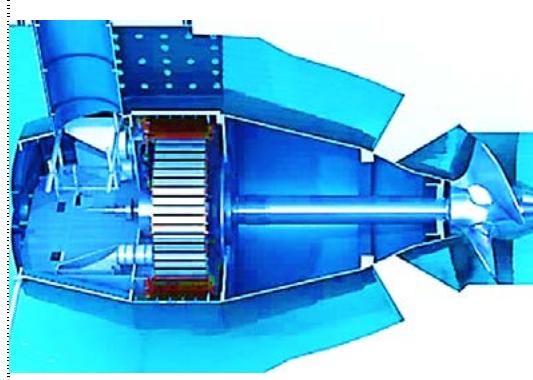 Рис. 8: Многоярусный ортогональный гидроагрегат диаметром рабочих колёс 5 м на примере проекта ПЭС Северная
