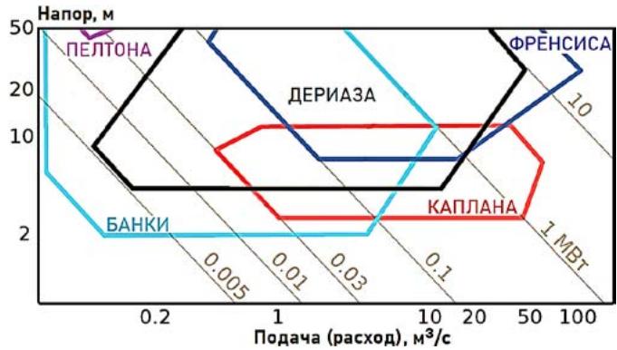 Тюрго - оT 35 M - 30 кBT-2 MBT. Рис. 4: Типы высоконапорныхгидротурбин