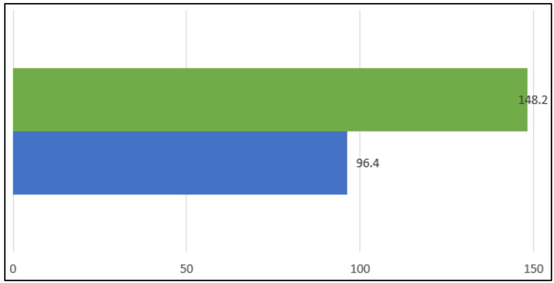Figure 4: Monthly comparison of rainfall (mm) in Guapán Rain Gauge. In green the month of November 2021, in blue the month of November 2020.