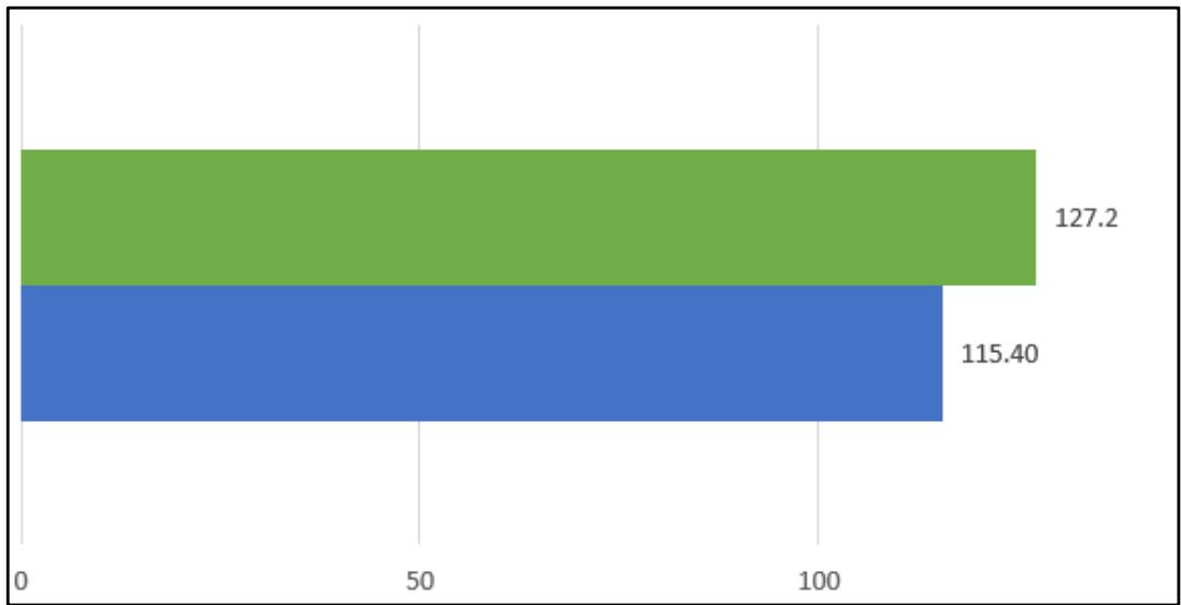 It is determined that there is a different behavior, the amount of rainfall of 2021 is less than 2020. Figure 6: Monthly comparison of rainfall (mm) in Pugioloma Rain Gauge. In green the month of November 2021, in blue the month of November 2020