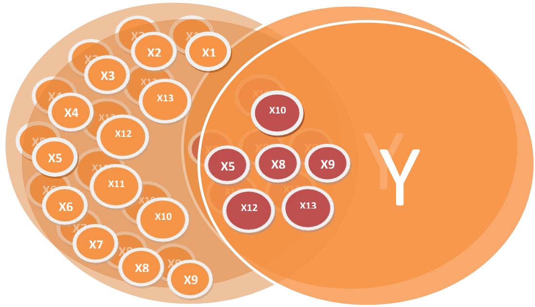 Relation with Relatives and Neighbours (X11)and Psychological Drudgeries Caused by Farming (X13) explained by the combination of only these 3 casual variables.