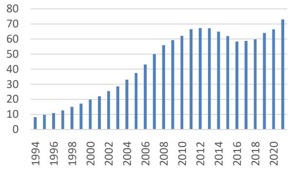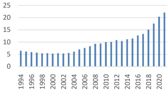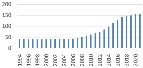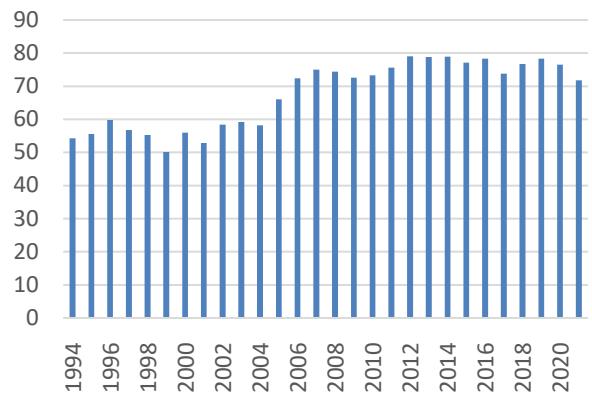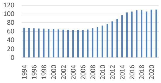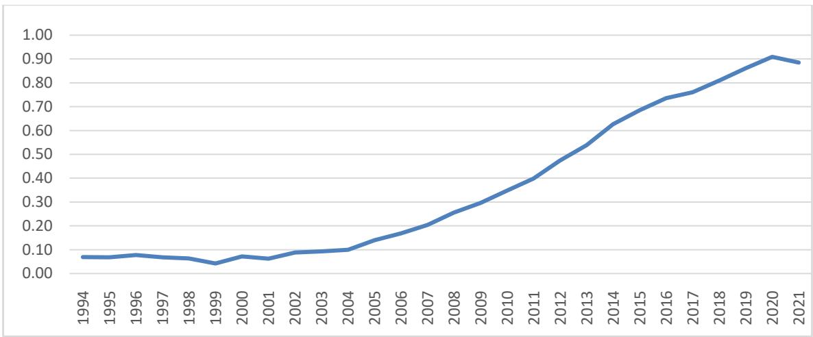 These governance indicators are expressed in percentile ranks from 0 to 100, as shown in Figure 3, where higher ranks indicate stronger governance. For consistency, biannual data from 1996 to 2002 were converted to annual data using linear interpolation.