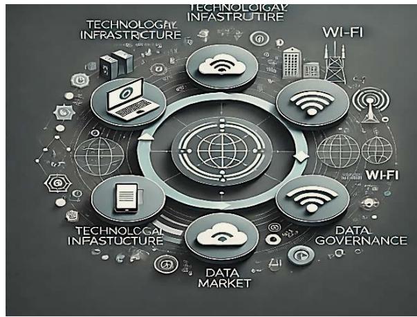 We must not lose sight of the dimensions that sustain digital platforms: technological infrastructure, data markets, and governance (Poell, Nieborg, & Dijck, 2020), as illustrated in Figure 1. Let us consider: within a digital platform, we find various infrastructures. For example, on UOL, we observe ads, public and private sections, diverse information, cookies, user logins, tabs for products, horoscopes, calendars, local weather, social media links, and much more. In this sense, digital infrastructures are an aggregation of technologies available on the network that configure platforms.