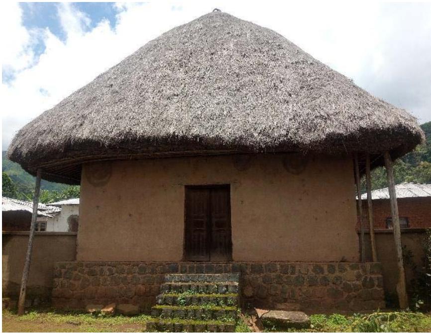 These traditional architectures, found in fondoms in the Bamenda Grassfields, serve various functions and preserve the people's cultural heritage. The Kedjom Keku Palace is a complex of traditional buildings that serves as the seat of the Kedjom dynasty. It comprises several interconnected structures, including the Fon's residence, the queen's residence, and the council chambers.[^48] Visitors can explore the palace grounds and gain insight into the history and culture of the Kedjom people. Traditional architecture represents an ancient craft in building construction that has long been employed by local communities. It is regarded as a primary form of artistic expression and forms an integral part of their indigenous museum. In the context of Kedjom Keku, traditional architectures served as dwellings where families resided, showcasing both decorative values and construction techniques. These houses were often constructed using materials such as mud blocks, stones, sticks (bamboos), and grasses.[^49]