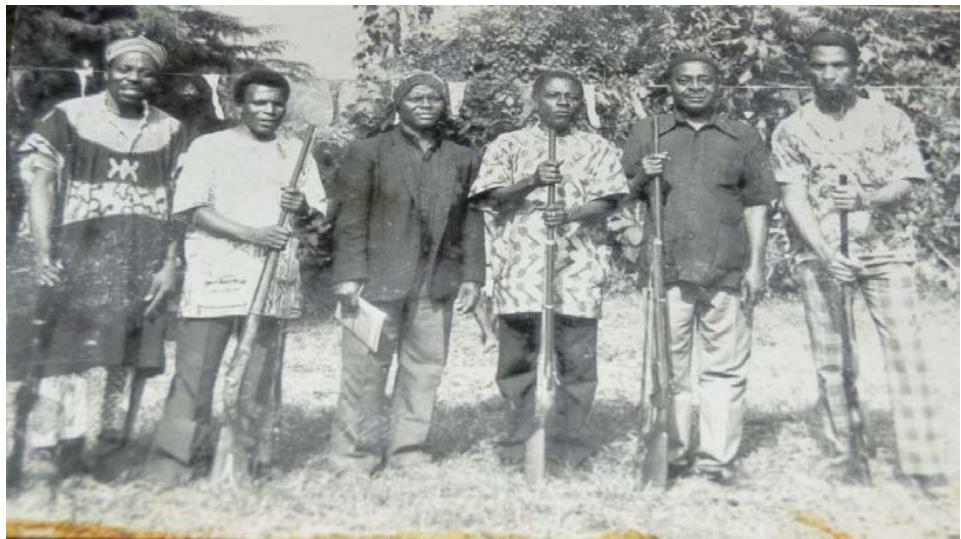 More so, plate 8 represents Kedjom Keku notables with Fon Simon Vugah II on a tour as leader of sixteen other chiefs from the Cameroon-Nigeria Borders to visit Yaoundé, Buea and Sonara (Limbe). In the course of this tour, the Fon lodged in Tohtuh's house (a notable in Buea) while Commandant Fusi entertained the Kedjom people's in Buea. This photograph was taken on July 4, 1982 in Buea. In this light, Fon Vugah Simon II, who succeeded Fon Philip Vubangsi and was born in 1940. He received his education at the Basel Mission School in Kedjom Keku. He underwent a three-year training program at the Catechist Training Institute of the Presbyterian Church in Nyassoso from 1961 to 1963. After his training, he served as an Assistant Pastor in various congregations of the Bamenda Grassfields. In 1974, he was summoned by his father and started a private business as a chemist. Fon Vugah Simon II was enthroned as fon in 1979 and disappeared in 2004.[^70]