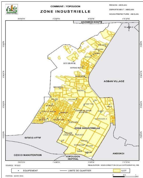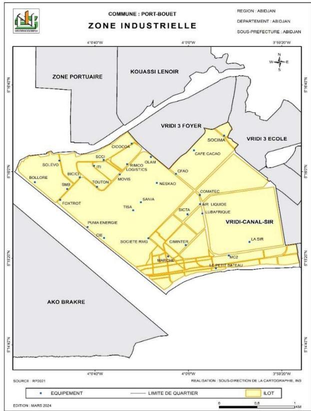 Mapping of the Port-Bouét industrial zone Source: Field data, mapping produced by INS 2024