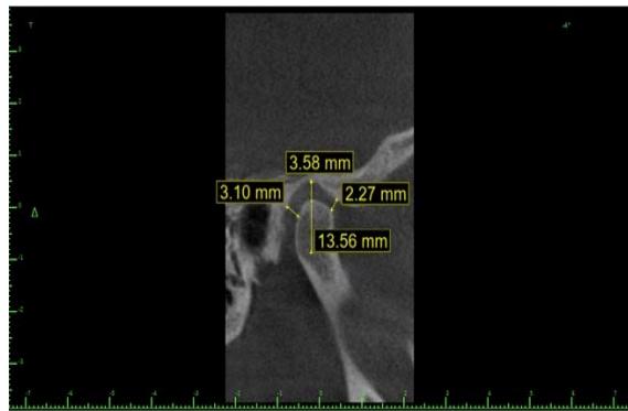 3. Superior articular space: measured by the shortest distance between the condyle's uppermost point and the articular fossa's uppermost point.