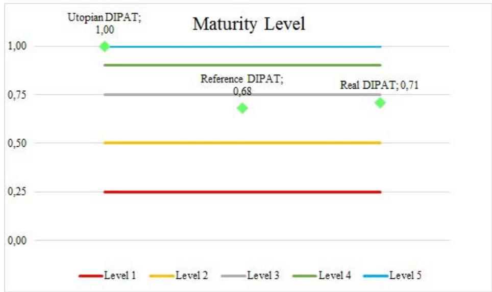 Here, the maturity model is applied to the evaluation alternatives. Reference DIPAT $(A_r)$, Real DIPAT $(A)$, and Utopian DIPAT $(A^+)$. The Utopian DIPAT is the ideal DIPAT, that is, the best possible alternative.