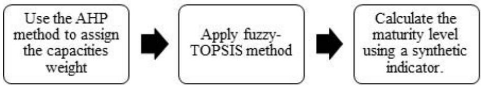 From the results, the AHP method was considered efficient for the analysis and weighting of capacity weights. The fuzzy-TOPSIS method was able to generate a synthetic indicator for the measurement of the maturity level from the data of the alternatives Utopian DIPAT, Reference DIPAT and Real DIPAT.