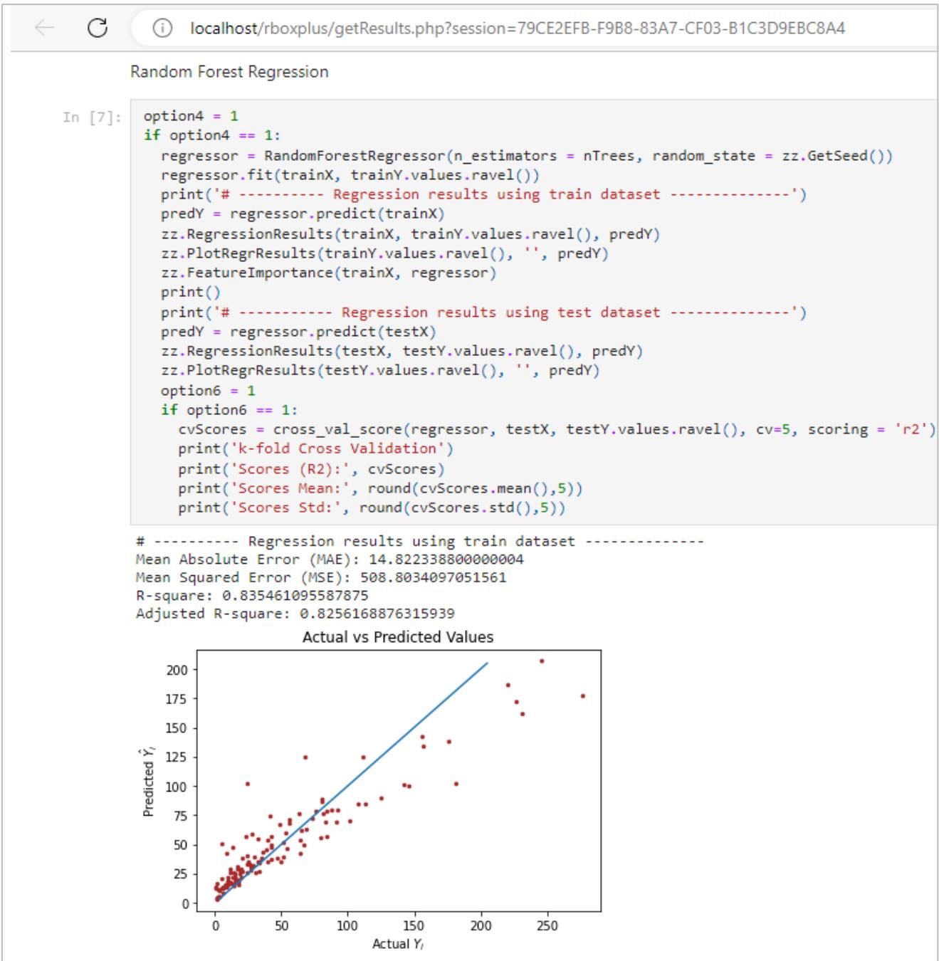 By producing results directly in Jupyter Notebook format, Rbox+ preserves the complete computational workflow, including the Python /R source code, intermediate outputs, and final results. This integration enables users to review, validate, and reproduce analyses without relying on opaque result summaries. In addition, the notebook format allows analysts to extend or modify the generated code, supporting iterative experimentation and a deeper understanding of the applied ML techniques [10,21].