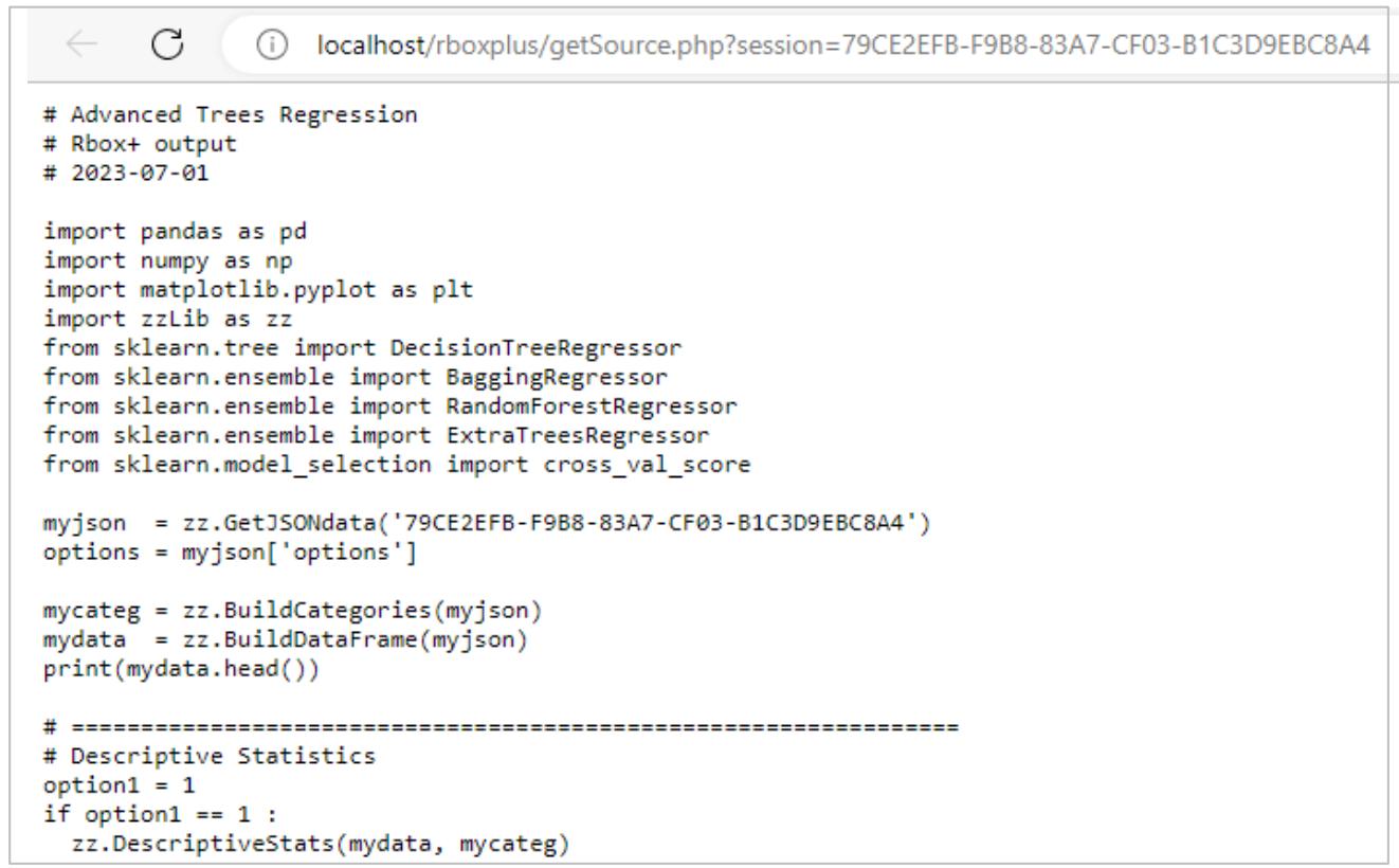 The Rbox+ is designed as an "open box" that is receptive to further adjustments, modifications, and improvements. Validation of ML models is very crucial, providing a parameter for software integration and system implementation. The user can review and compare the source code of both Python and R by examining the results of the requested ML and statistical tests. This feature further enhances the transparency of the results by modifying and improving the ML algorithms if needed, as their validation becomes more critical than ever before.