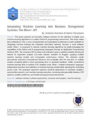 Dr. Antonios Konomos. 2026. \u201cIntegrating Machine Learning into Business Management Systems: The Rbox+ API\u201d. Global Journal of Computer Science and Technology, Global Journal of Computer Science and Technology - C: Software & Data Engineering GJCST-C Volume 26 (GJCST Volume 26 Issue C1): .