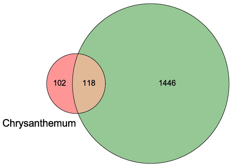 Fig. 2: Venn diagram of active compound targets of Chrysanthemum and related targets of dry eye.