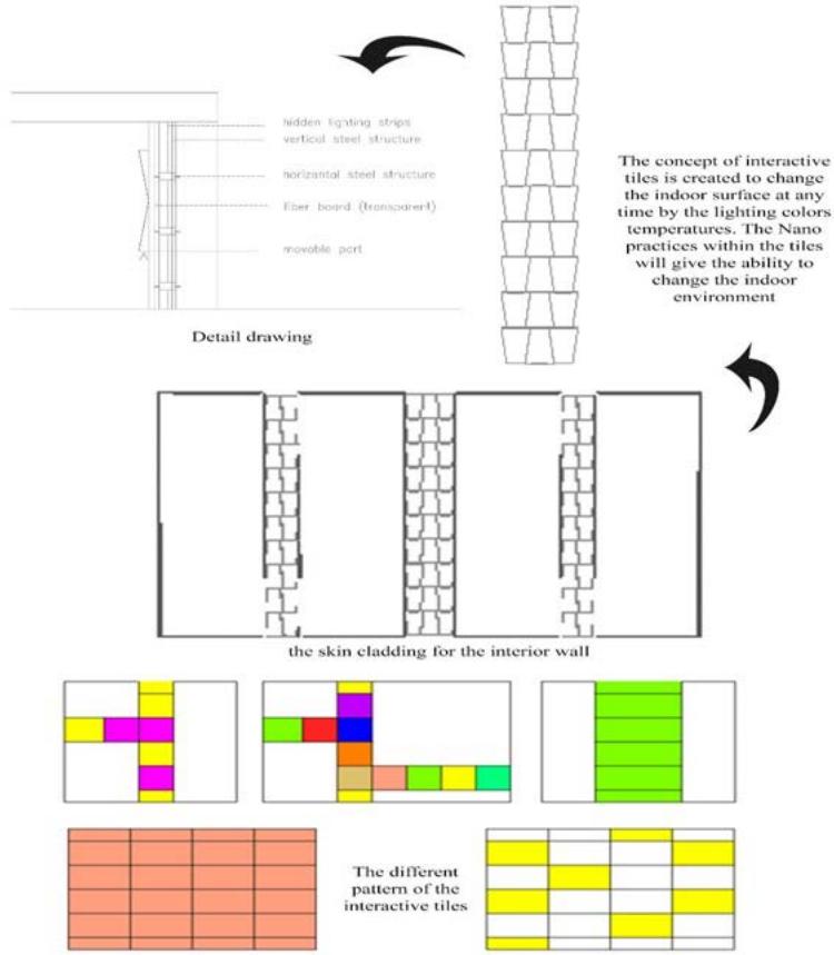 The lighting color temperatures greatly affects the psychological and physical state of a person and changes his mood as well as it works to provide beauty in the internal design of spaces and make them look attractive and distinctive. Consequently, the proposal aims to provide interactive can be changed with the human mood. In addition to taking into account what is commensurate with the needs of the space in terms of size or location, whether in the walls, ceiling or floor. Besides, The ability to control the levels of tiles, which allows the colored shadows to be reflected on the internalspace.